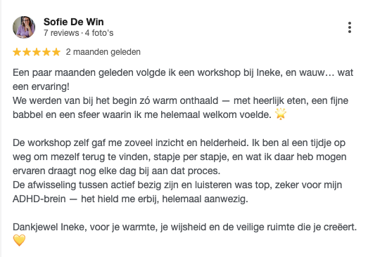 We nemen de tijd om te delen wat er wél gelukt is, en wat de leermomenten waren. Om elkaar te inspireren met verhalen van groei, kwetsbaarheid en moed.