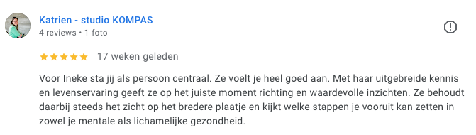 Ineke neemt de tijd om jou echt te leren kennen en past zich aan jouw échte noden. (die pas echt duidelijk worden dankzij voorbereidend werk én zeer gerichte vragen tijdens de sessie)